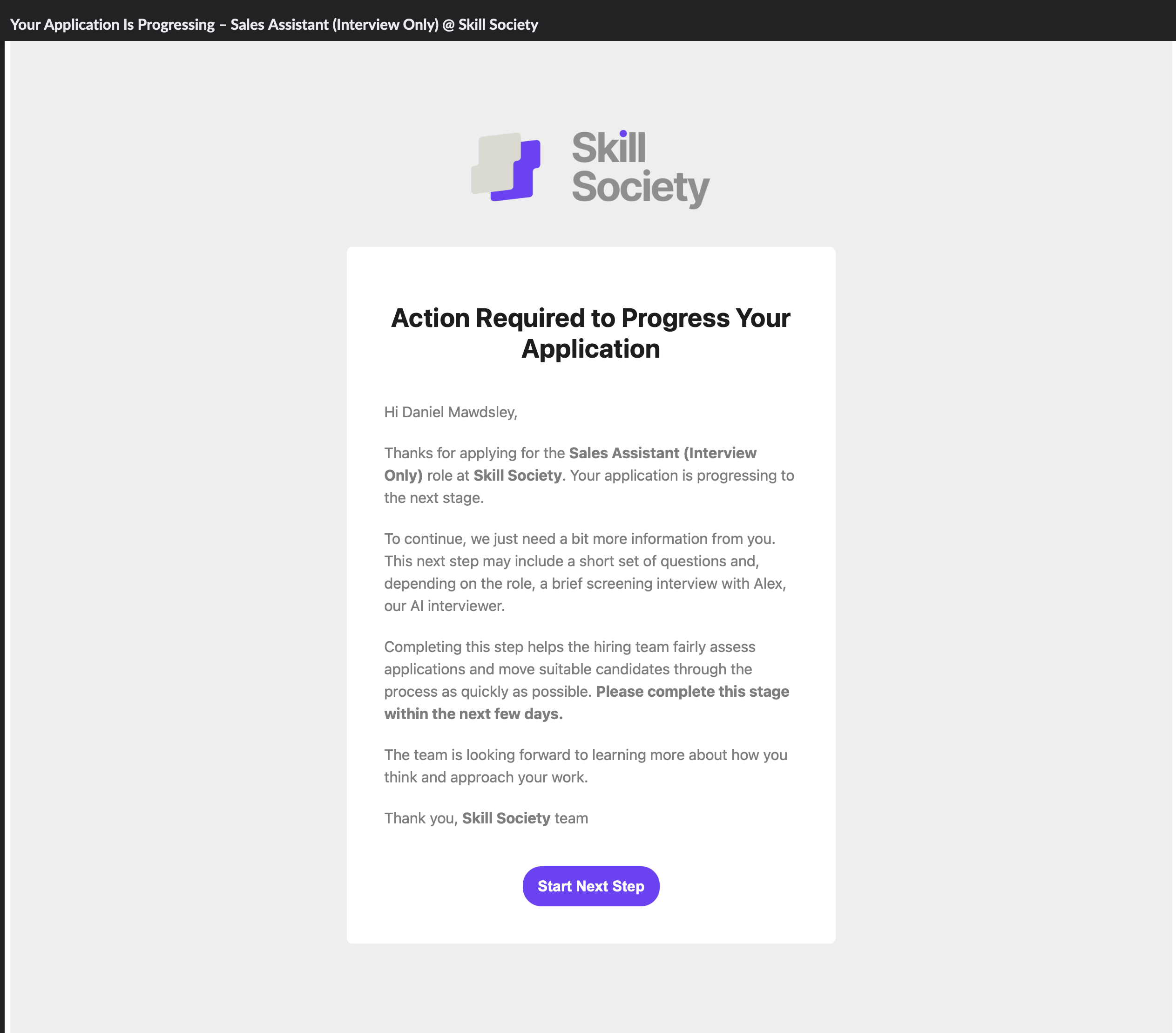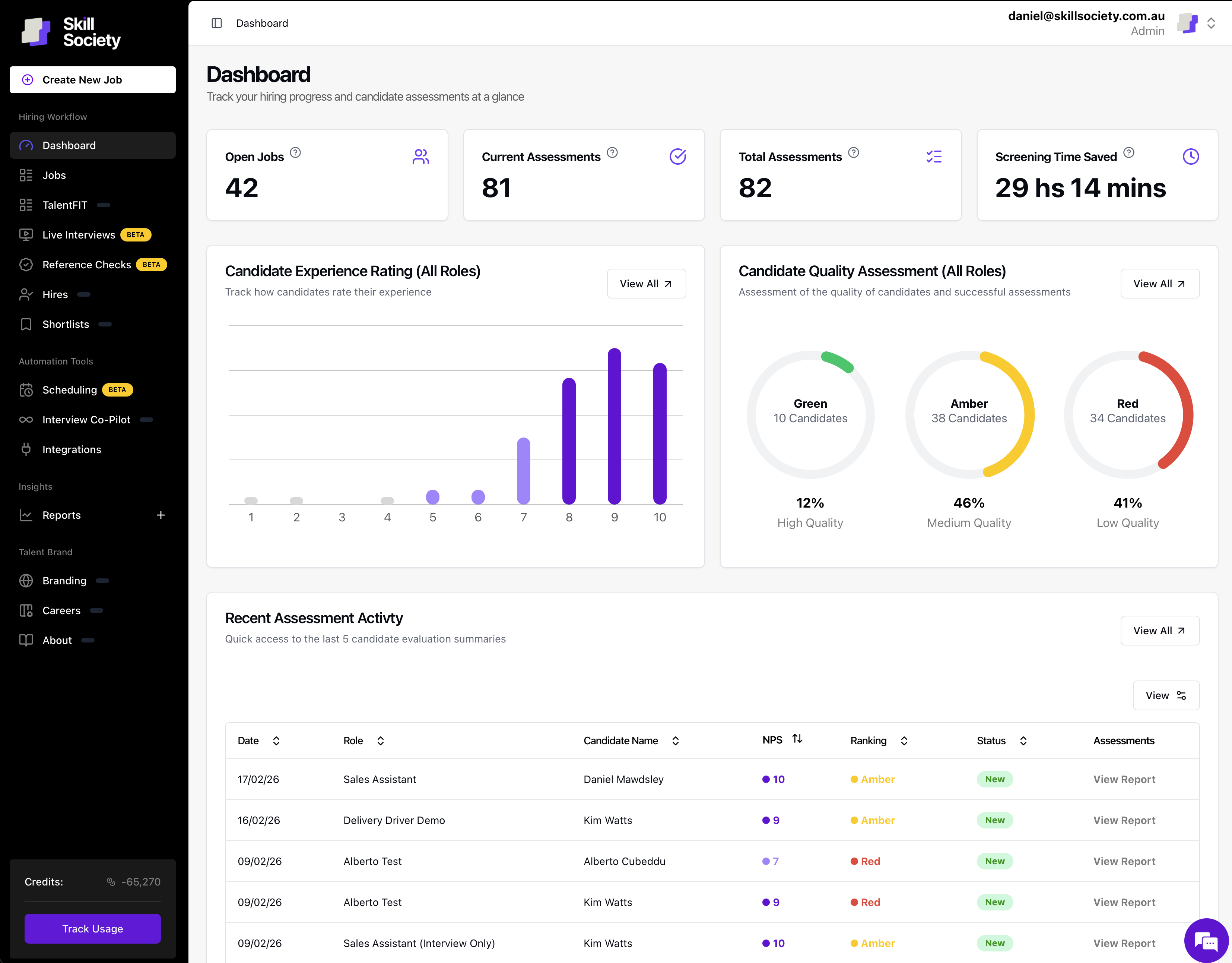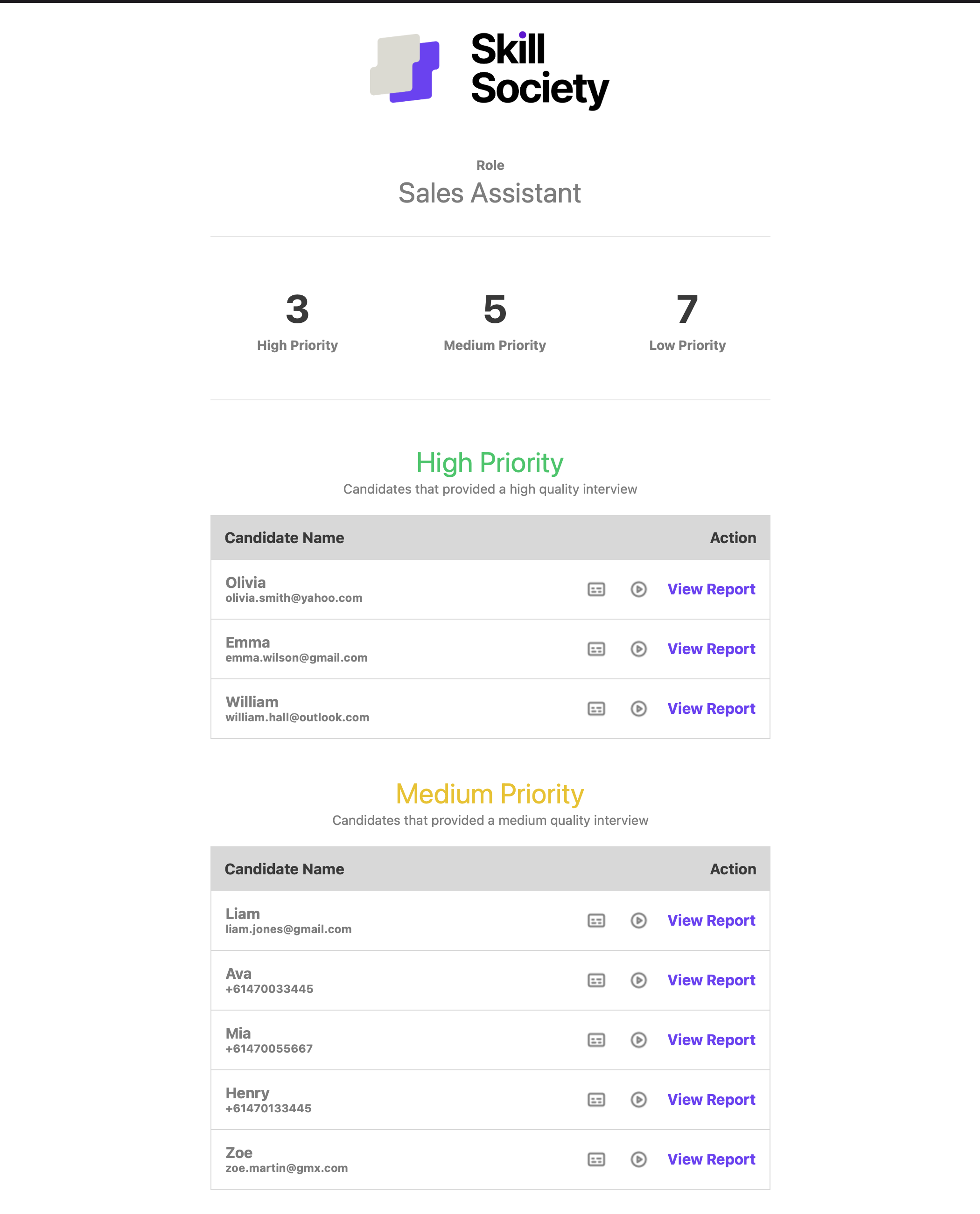 Skill Society has been a massive time saver for our candidate screening. What used to take hours now takes minutes. The detailed insights and daily reporting allow us to confidently identify top talent and move faster without compromising quality.