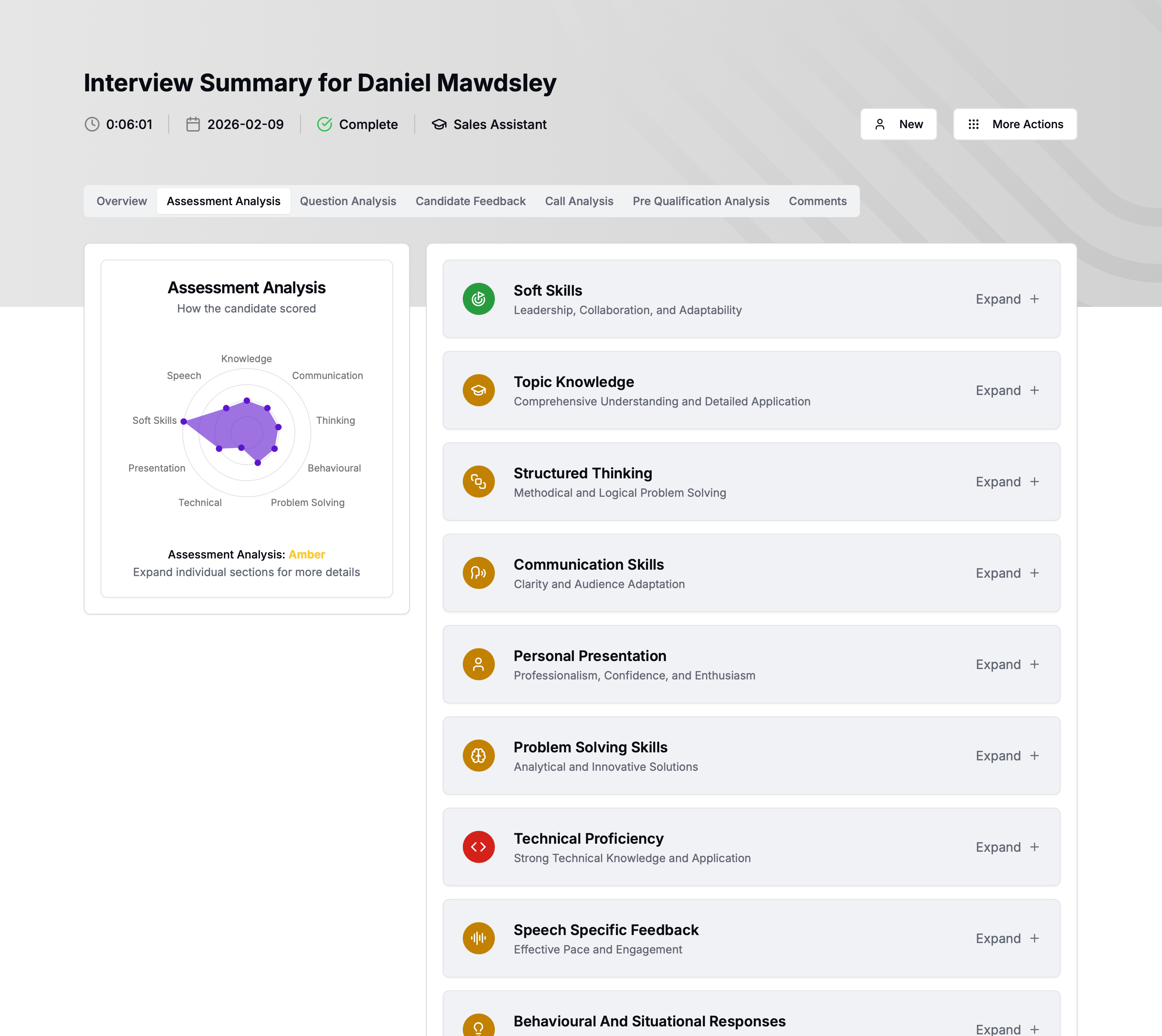 Standardised scoring ensures every candidate is assessed using the same structured criteria, supporting consistency and DEI initiatives.