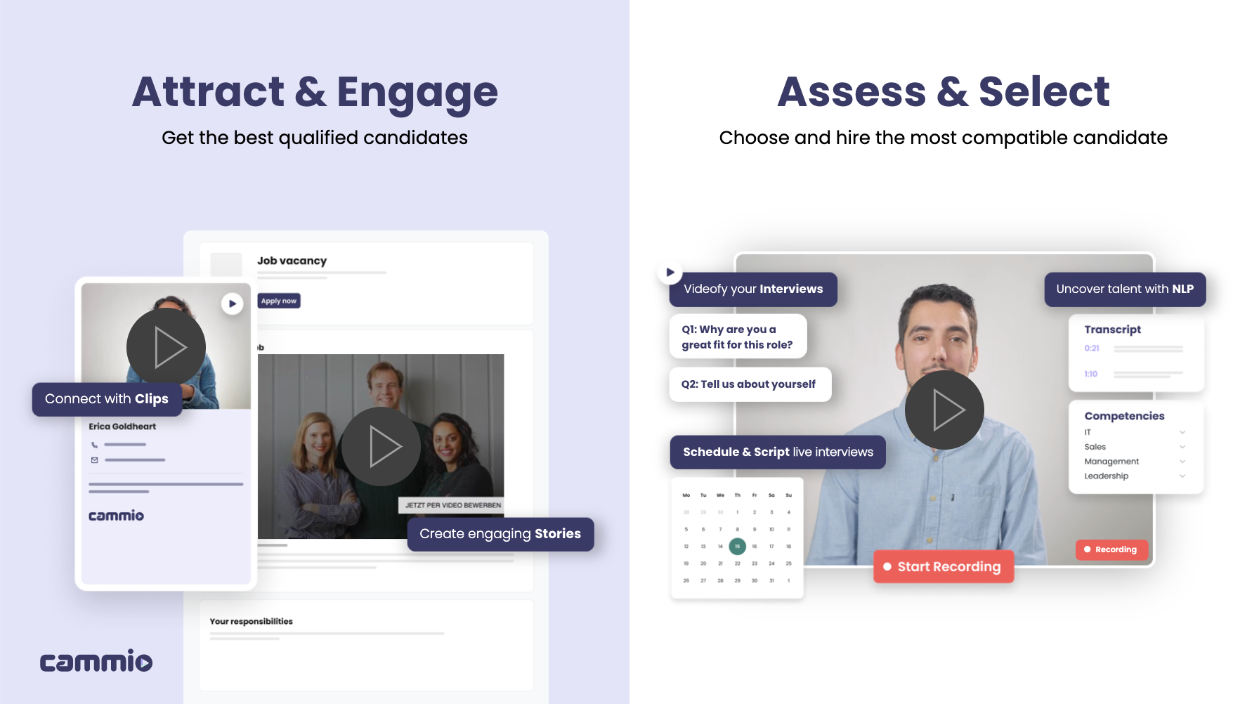 We are more. So much more than our past job specs or qualifications. Discover candidate’s true personality, in full color. Start the first step on an exciting career journey together. Cammio is on a mission to connect candidates and employers by capturing talent in all its facets. To get ahead with video.