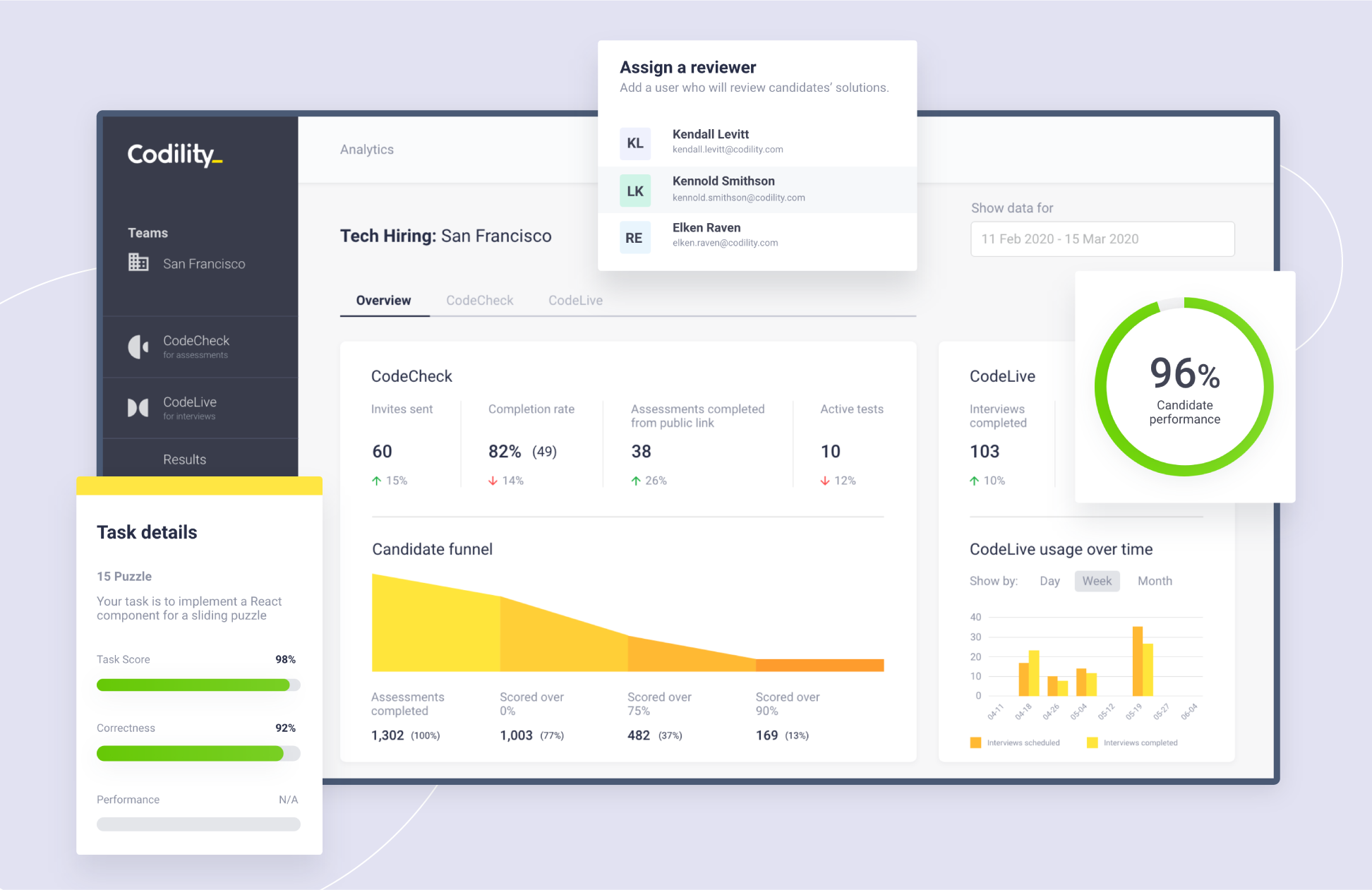Codility makes great hiring decisions effortless without wasting engineering or recruiter time. Candidates are evaluated equally based on the technical skills that matter enabling engineering leaders to build high-performing, diverse teams that power growth.
