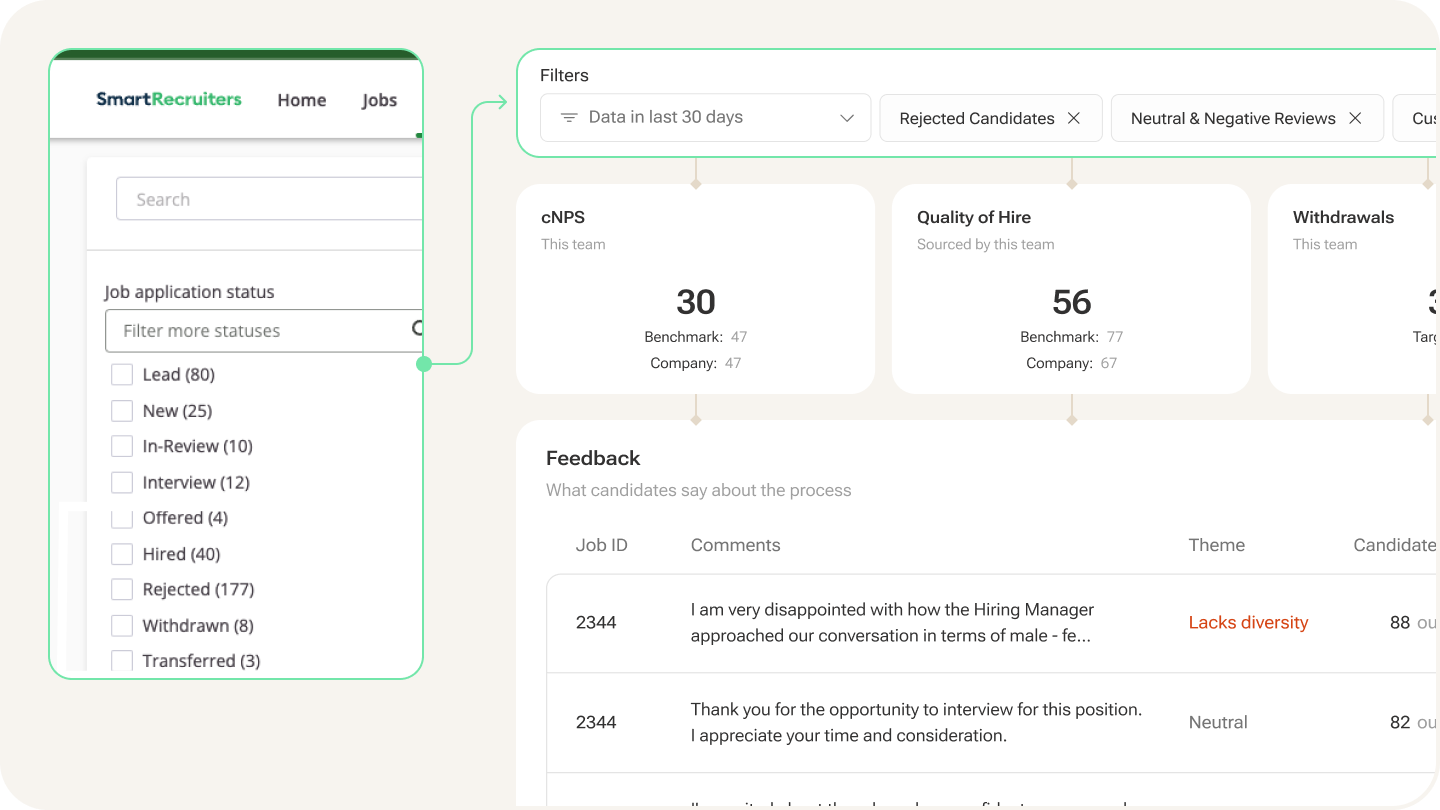 - Filter data as you do in SmartRecruiters to identify strengths and areas for improvement.