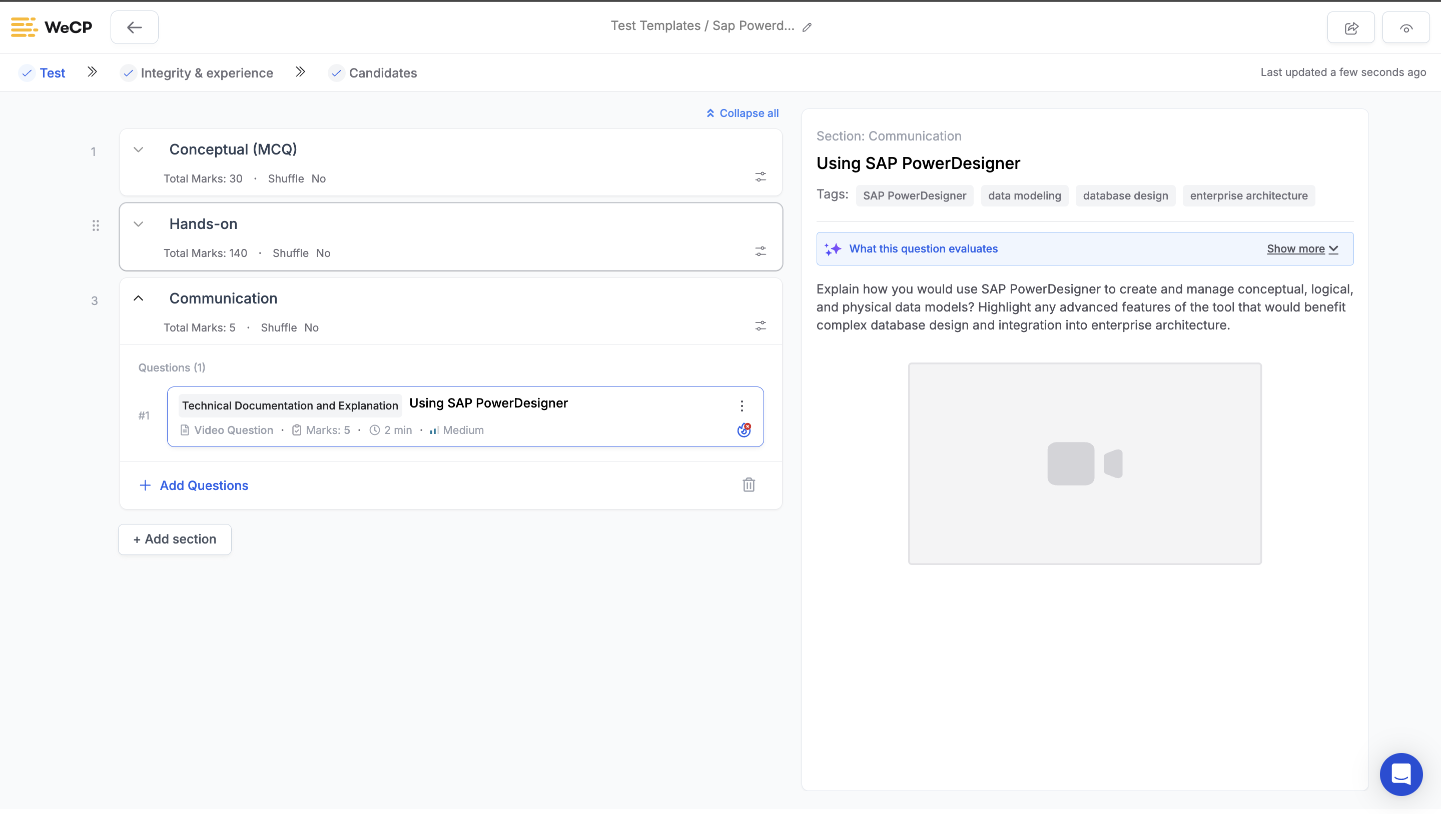 Poor filtering options make it difficult to narrow down results to the most pertinent questions that a Hiring Manager needs. But WeCP got you an amazing LLM powered question search.